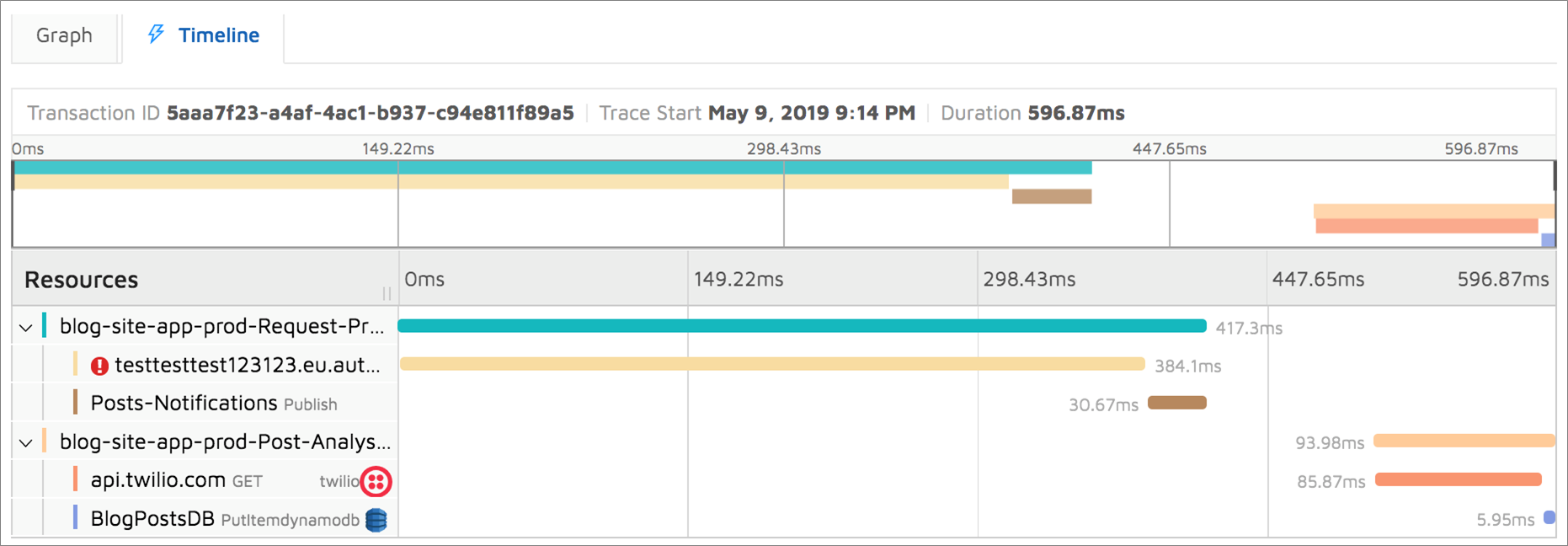As shown in Figure 2, timeline view is an easy way to identify performance problems in your distributed application.