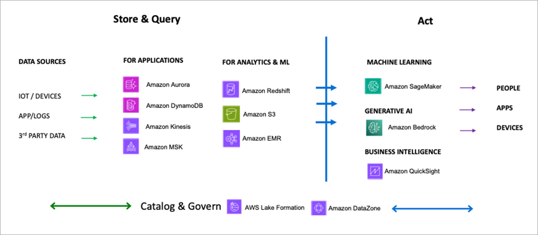 Without high-quality data, the potential for reliable, high-value results diminishes, highlighting the importance of sourcing and curating datasets that capture the essence of domain expertise and human creativity. The following diagram lays the groundwork for a typical view of data sources, application types, and the resulting metrics to track on the AWS ecosystem.