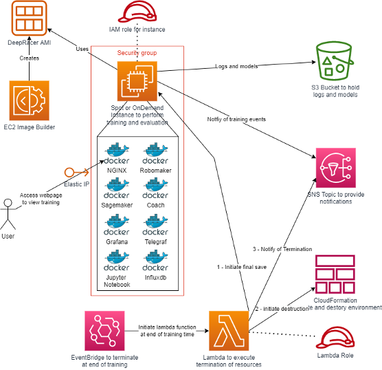 To complement the AWS DeepRacer console experience, Eviden, offered racers access to DeepRacer open-source community projects, for example DeepRacer on the Spot (DOTS). DOTS provides racers an opportunity to use AWS CloudShell or a local IDE to deploy their AWS CloudFormation stack, using EC2 Spot instances to develop their models. Not only is this a cost-effective method, but it exposes racers to spot instances, both in terms of their nature like frequency of spot interruption. Market-based pricing that varies by region, Amazon S3 object storage to frequently store their models in case of interruption, and tools such as git. Racers were also given a budget, so cost discipline and setting up billing alarms was a learning point too.