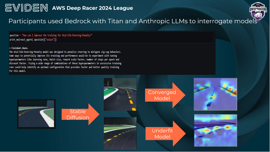 Figure 4 – Racers leveraging Bedrock with Amazon titan and Anthropic LLMs to improve their models