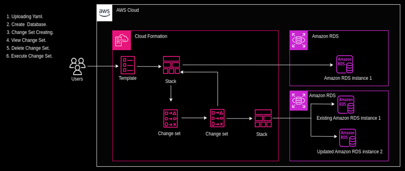 - Since a running RDS service is important and needs to be available at all times, implementing the requirement with a change set allows previewing changes before applying them. It also ensures RDS instances stay running smoothly and efficiently.