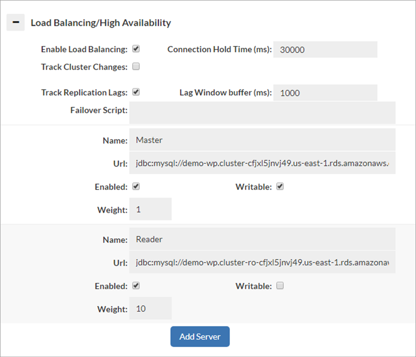 After completing the wizard, the configurations will pre-populate. The Data Sources tab will appear like below, with one read/write instance configured along with at least one read-only instance.