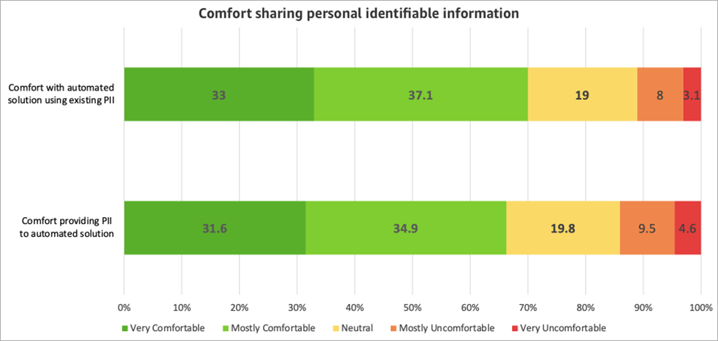 As part of the survey, respondents were asked if they are comfortable sharing personally identifiable information (PII) and having the automated solution make use of their personal information. It turns out they are.