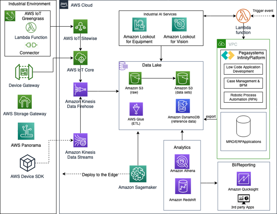 Figure 1 – Reference architecture for industrial applications built with AWS IoT and Pegasystems.
