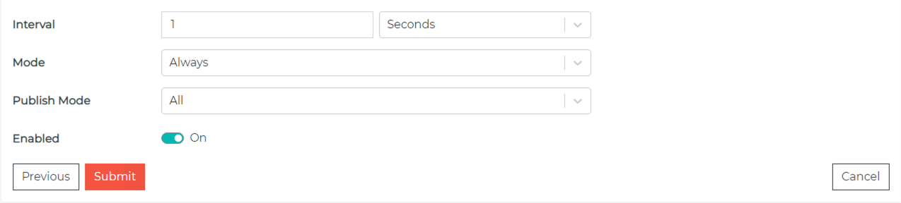 - Mode – Always send, On-Change, On-True, or While True