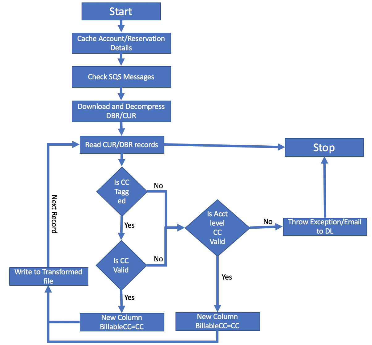 - Download the file, unzip, and read row-by-row; for a DBR file, consider only the “LineItem” RecordType