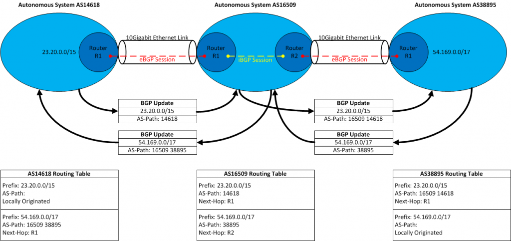 Internet routing today is handled through the use of a routing protocol known as BGP (Border Gateway Protocol). Individual networks on the Internet are represented as an autonomous system (AS). An autonomous system has a globally unique autonomous system number (ASN) which is allocated by a Regional Internet Registry (RIR), who also handle allocation of IP addresses to networks. Each individual autonomous system establishes BGP peering sessions to other autonomous systems to exchange routing information. A BGP peering session is a TCP session established between two routers, each one in a particular autonomous system. This BGP peering session rides across a link, such as a 10Gigabit Ethernet interface between those routers. The routing information contains an IP address prefix and subnet mask. This translates which IP addresses are associated with an autonomous system number (AS origin). Routing information propagates across these autonomous systems based upon policies that individual networks define.
