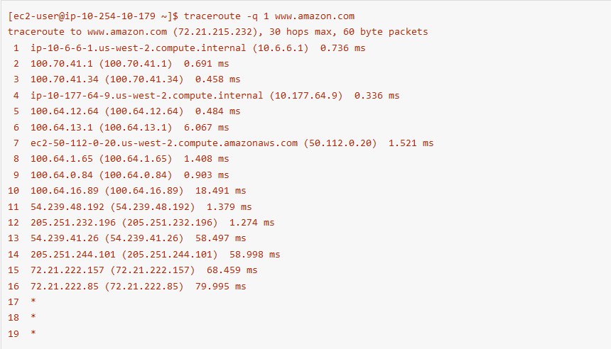 Note that the last hop does not respond, since it most likely denies UDP packets destined to high ports.