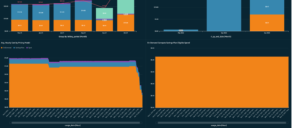 We’ve seen customers leverage the Cost Intelligence Dashboard to successfully manage and optimize their AWS bill. For example, a security and data solutions company used the hourly compute visualizations (more on that below) within the Cost Intelligence Dashboard to reduce their overall Amazon EC2 compute spend by roughly $20k per month (or 8% of their overall Compute spend). An educational technology company in India saved $23K per month by identifying more right-sizing opportunities using the same compute visualizations in the dashboard. And a construction machinery and equipment company in the US saved $12K per month by using the storage visualizations to identify opportunities to adjust their storage retention policies