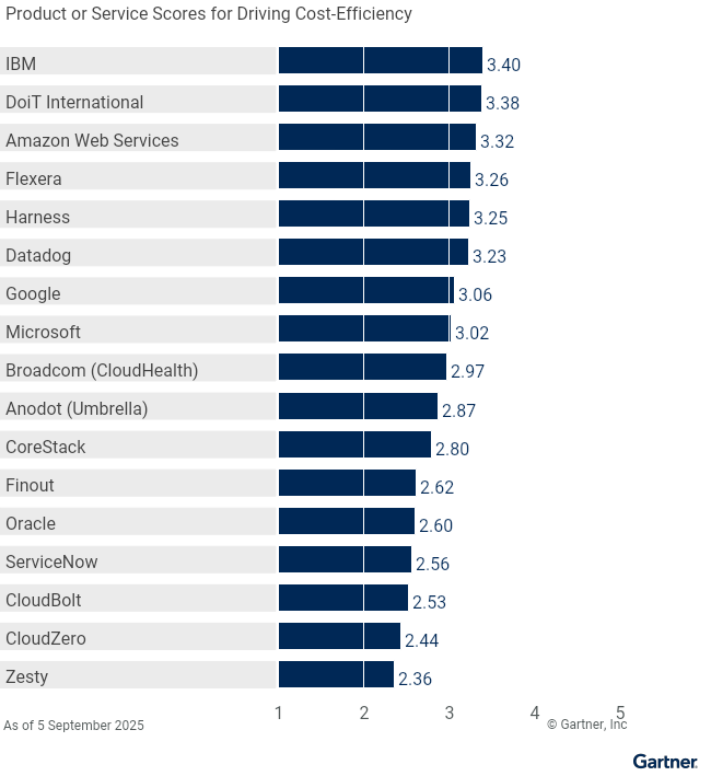 Figure 2. Vendors Product Scores for Driving Cost Efficiency Use Case