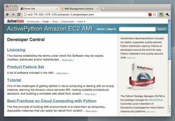 The folks at ActiveState have cooked up an ActivePython AMI to make it easy for you to build and deploy web application written in Python.You can get started in minutes without having to download, install, or configure anything.