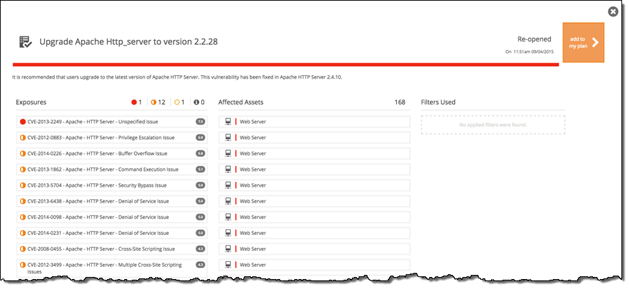 By taking these steps you can see that, for example, an upgrade to one Apache HTTP_server image addresses several vulnerabilities discovered in the environment: