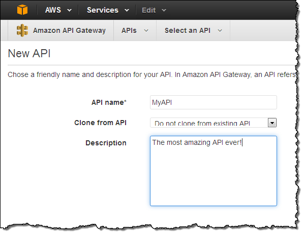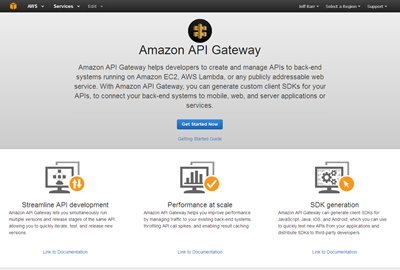 The API Gateway makes it easy for you to connect all types of applications to API implementations that run on AWS Lambda, Amazon Elastic Compute Cloud (Amazon EC2), or a publicly addressable service hosted outside of AWS. If you use Lambda (I’ll show you how in just a moment), you can implement highly scalable APIs that are totally server-less.