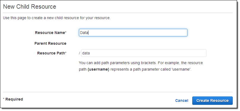 Then I create a child resource within the root resource by clicking on the Create Resource button: