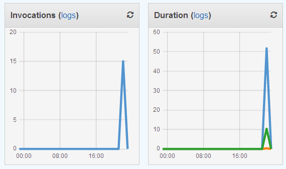 I can also hop on over to the Lambda Console and see the metrics for my function from there: