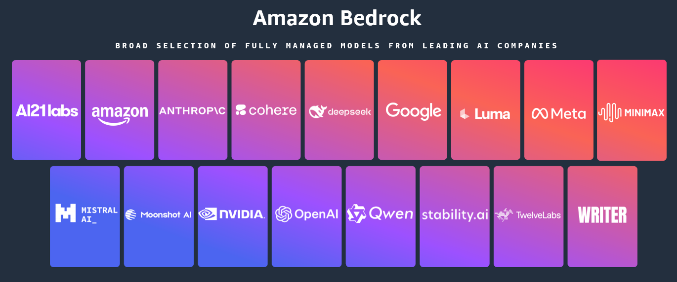 With this launch, Amazon Bedrock now provides nearly 100 serverless models, offering a broad and deep range of models from leading AI companies, so customers can choose the precise capabilities that best serve their unique needs. By closely monitoring both customer needs and technological advancements, we regularly expand our curated selection of models based on customer needs and technological advancements to include promising new models alongside established industry favorites.