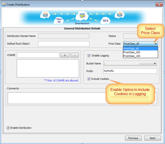 The images below show you how to use the new CloudFront features with Bucket Explorer. You can select a distribution type: