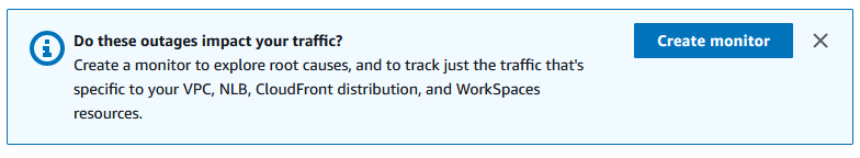After you review the map, you can click Create monitor to get started with CloudWatch Internet Monitor: