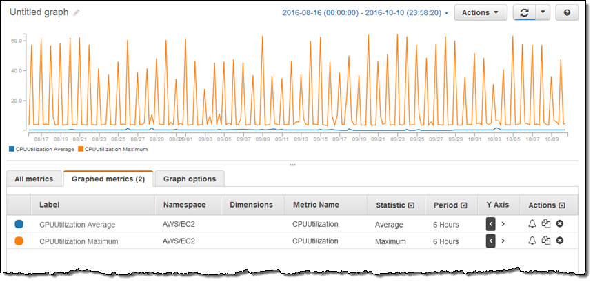 The ability to duplicate a metric and then change a statistic lets me compare, for example, maximum and average CPU Utilization (I also changed the Period to 6 hours):