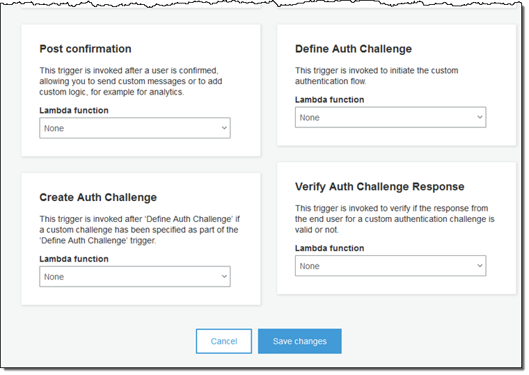 - Custom Authentication Flow – Use new APIs and Lambda triggers to customize the sign-in flow.