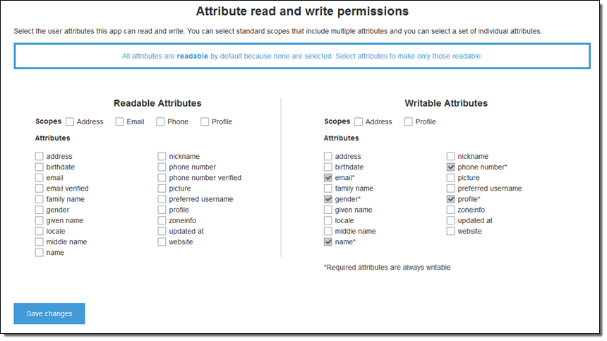 You can now set per-app read and write permissions for each user attribute. This gives you the ability to control which applications can see and/or modify each of the attributes that are stored for your users. For example, you could have a custom attribute that indicates whether a user is a paying customer or not. Your apps could see this attribute but could not modify it directly. Instead, you would update this attribute using an administrative tool or a background process. Permissions for user attributes can be set from the Console, the API, or the CLI.