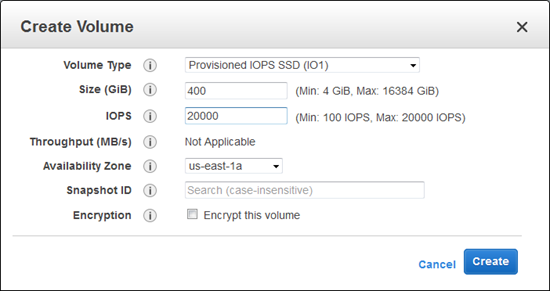 We introduced the concept of Provisioned IOPS back in 2012 (read my post, Fast Forward – Provisioned IOPS for EBS Volumes, to learn more). With Provisioned IOPS, you can dial in the precise level of performance that you need for each EBS volume. The number of PIOPS that you can configure is a function of the volume size; the larger the volume, the more PIOPS you can configure, up to a per-volume maximum of 20,000 PIOPS.