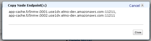 The cluster will be up and running within a few minutes. Once it is ready, you can copy the list of endpoints and use them to configure your application (you can also retrieve this information programmatically using the Amazon ElastiCache APIs):