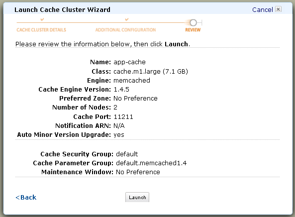 The AWS Management Console includes complete support for Amazon ElastiCache. Let’s walk through the process of creating a cluster.