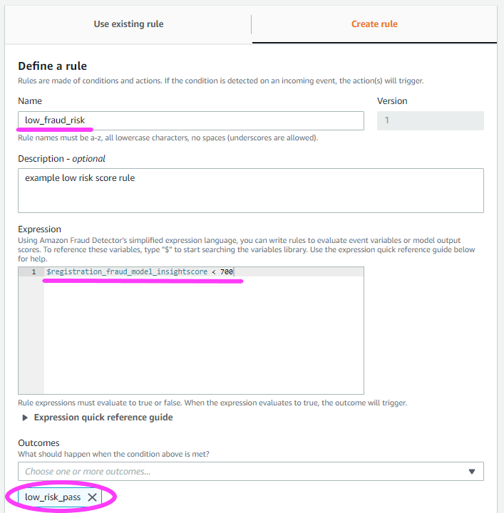 Let’s head back to the Amazon Fraud Detector console and check out the Rules in our Detector.
