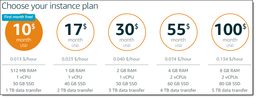 You can try out a 512 MB server for one month (up to 750 hours) at no charge.