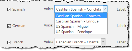 I can also specify the Polly voice for each target language: