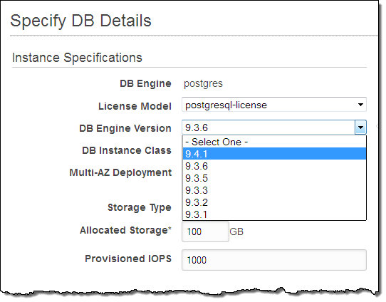 You can launch an RDS Database Instance running this version of PostgreSQL from the RDS Console, RDS APIs, or the AWS Command Line Interface (AWS CLI). Here’s how you do it from the Console: