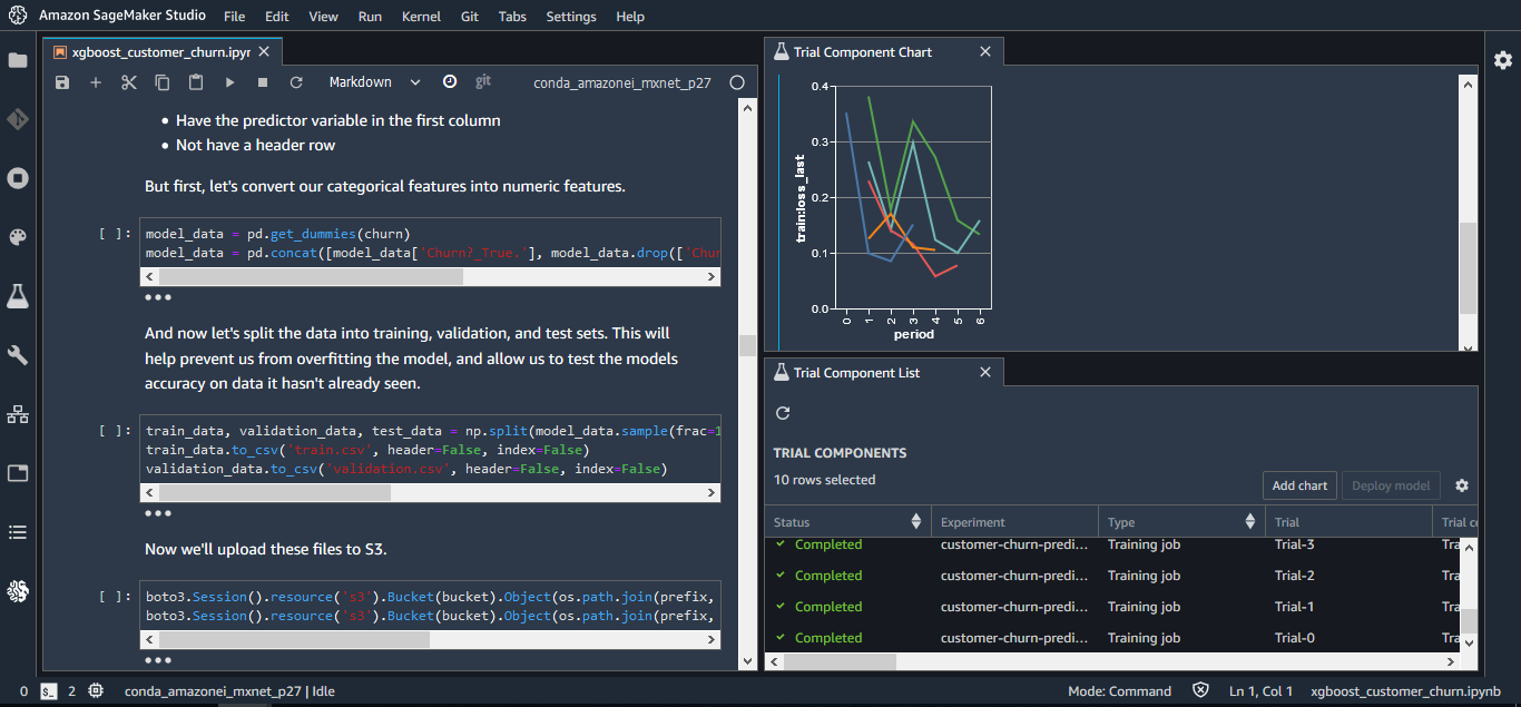 With Amazon SageMaker Notebooks (currently in preview), you can enjoy an enhanced notebook experience that lets you easily create and share Jupyter notebooks. Without having to manage any infrastructure, you can also quickly switch from one hardware configuration to another.