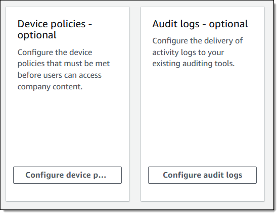 Other powerful administrative features include the ability to set up and use device policies, and to configure delivery of audit logs to a new or existing Amazon Kinesis Data Stream: