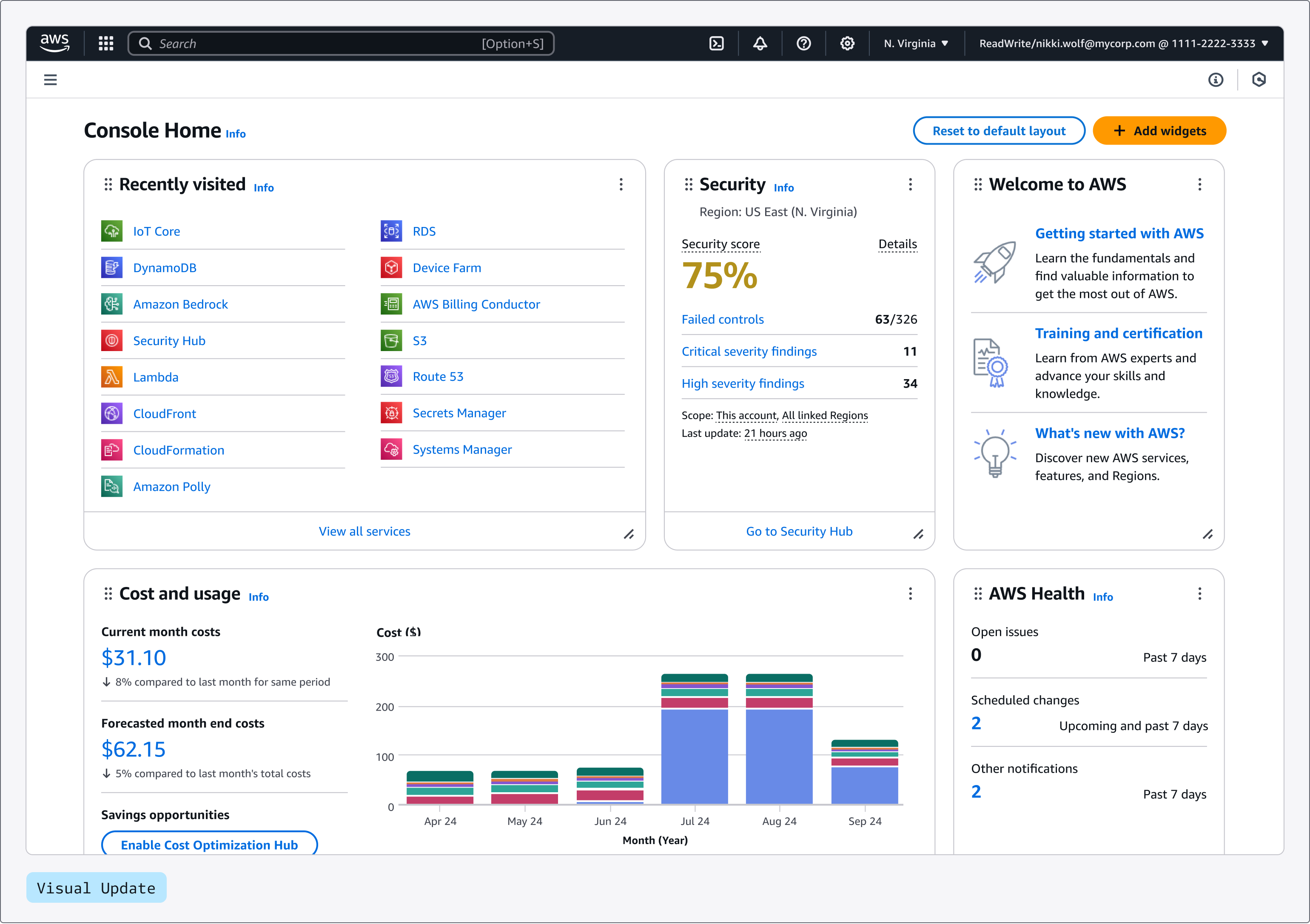 Today, we are announcing a visual update to the AWS Management Console in preview. We are rolling out this update by using the latest version of Cloudscape, the Amazon Web Services (AWS) design system used to build intuitive, inclusive, and meaningful AWS experiences at scale.