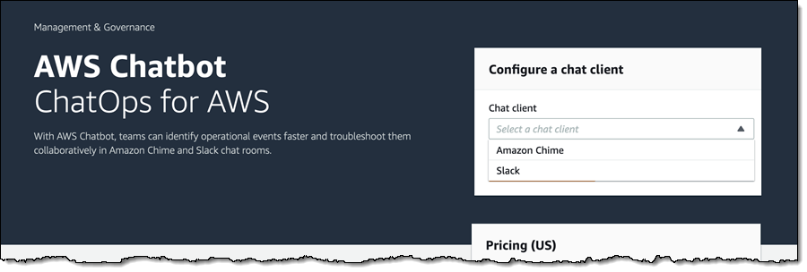 You can start using AWS Chatbot today at no additional charge. You pay for the underlying services (CloudWatch, SNS, and so forth) as if you were using them without AWS Chatbot, and you also pay any charges associated with the use of your chat client.