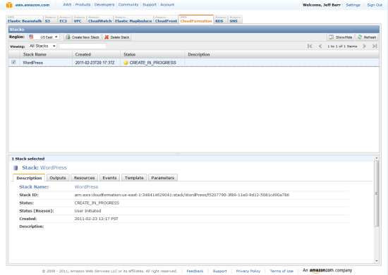 The AWS Management Console now includes full support for AWS CloudFormation. You can create stacks from templates, monitor the creation process, access the parameters and the outputs, and terminate the stack when you are done with it. As is my custom, here’s a tour!