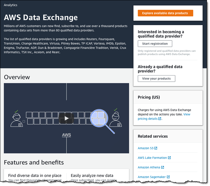 If you are a data subscriber, you can quickly find, procure, and start using these products. If you are a data provider, you can easily package, license, and deliver products of your own. Let’s take a look at Data Exchange from both vantage points, and then review some important details.