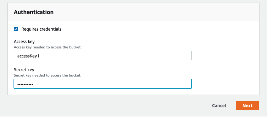 Your object storage will likely require credentials to access it, so you may want to require Authentication.