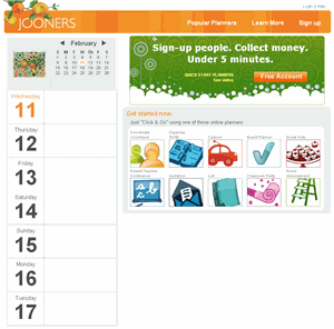 Jooners uses a clean and straightforward wizard-based planner model to plan one-time or recurring events, coupled with the Amazon Flexible Payments Service to handle all of the payment details. There’s a helpful introductory video on the home page and a gallery of popular planners.