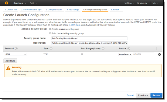 Today we are adding Auto Scaling support to the AWS Management Console. You can now create launch configurations and Auto Scaling groups with point-and-click ease, and you can bid for Spot Instances when scaling out. You can also initiate scaling operations from the console and you can manage the associated notifications.
