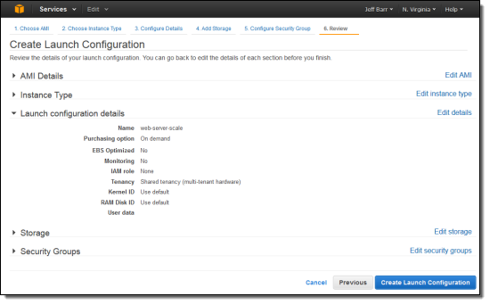 With all of the details specified, now is the time to review them and to create the launch configuration: