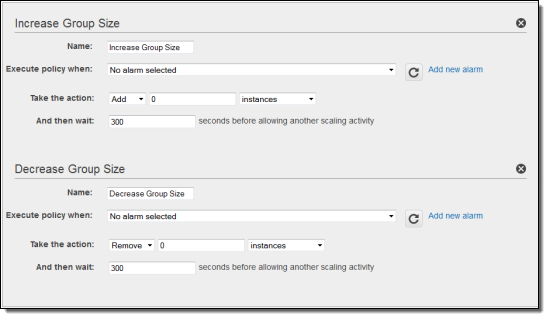 The next step is optional. If you are simply using the Auto Scaling group to ensure that a particular number of instances are up and running, you can skip it. If you want the group to vary in size in response to a changing load or to other factors, then you need to set up scaling policies.