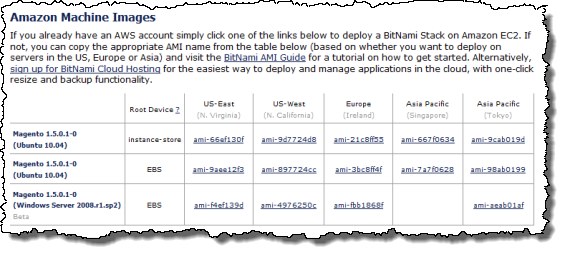 The developers at BitNami have already made use of this feature to link directly to their AMIs. For example, here’s their page of Magento AMIs: