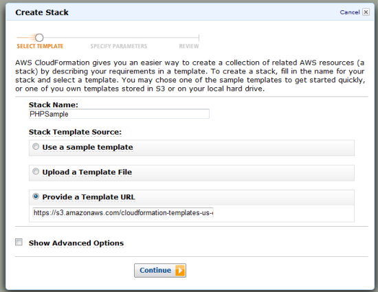 | turl~https://s3.amazonaws.com/cloudformation-templates-us-east-1/PHPHelloWorld-1.0.0.template | Specifies the link to the template |
