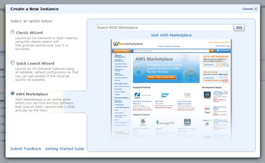 We recently made some improvements to the EC2 tab of the AWS Management Console. It is now easier to access the AWS Marketplace and to configure attached storage (EBS volumes and ephemeral storage) for EC2 instances.