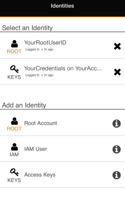 You can also sign in to the mobile app using your AWS access keys. If you choose this option, we recommend that you secure your device with a password, and that you create an IAM user specifically for use with the app.