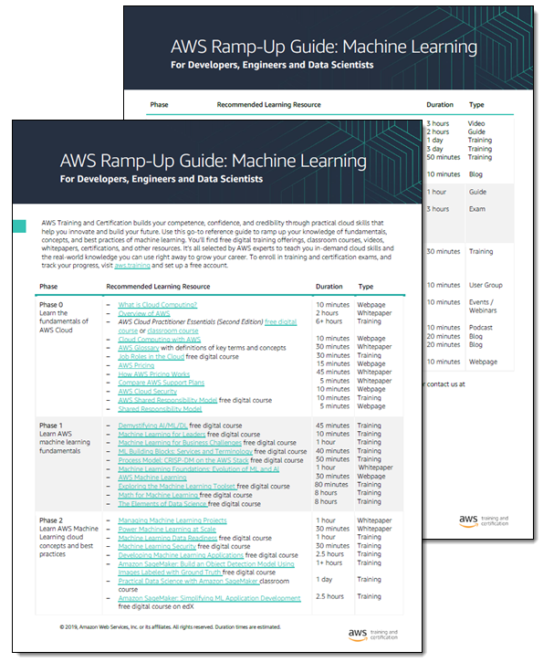 If you are ready to learn more about AI and ML, check out the AWS Ramp-Up Guide for Machine Learning: