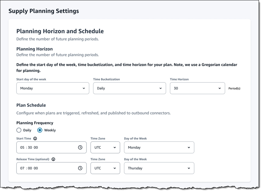 Supply Planning is done with respect to a planning horizon and on a plan schedule, both of which are defined in the organization profile: