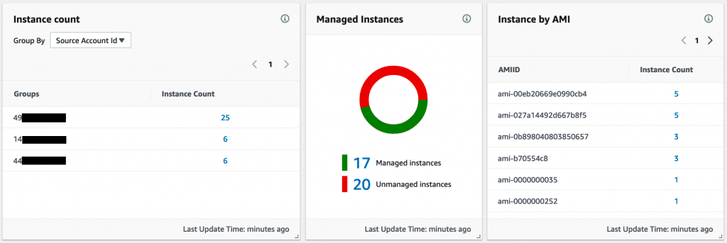 In addition to OpsItems, the Explorer dashboard also includes widgets that show consolidated information on EC2 instances: